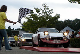 | スタートなのになんでチェッカーフラッグ?まっ、いいか。肝心なのは車だから。 | ||