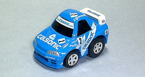 GT選手権第4戦総合優勝記念の限定歴代チョロQ4台セットのもの。サイドの白いラインはカルソニックブルー一色のものよりいいと思うんだけど、なにしろレース仕様はカルソニックばかりって感じで、もうそろそろ飽きてきたかな。 |